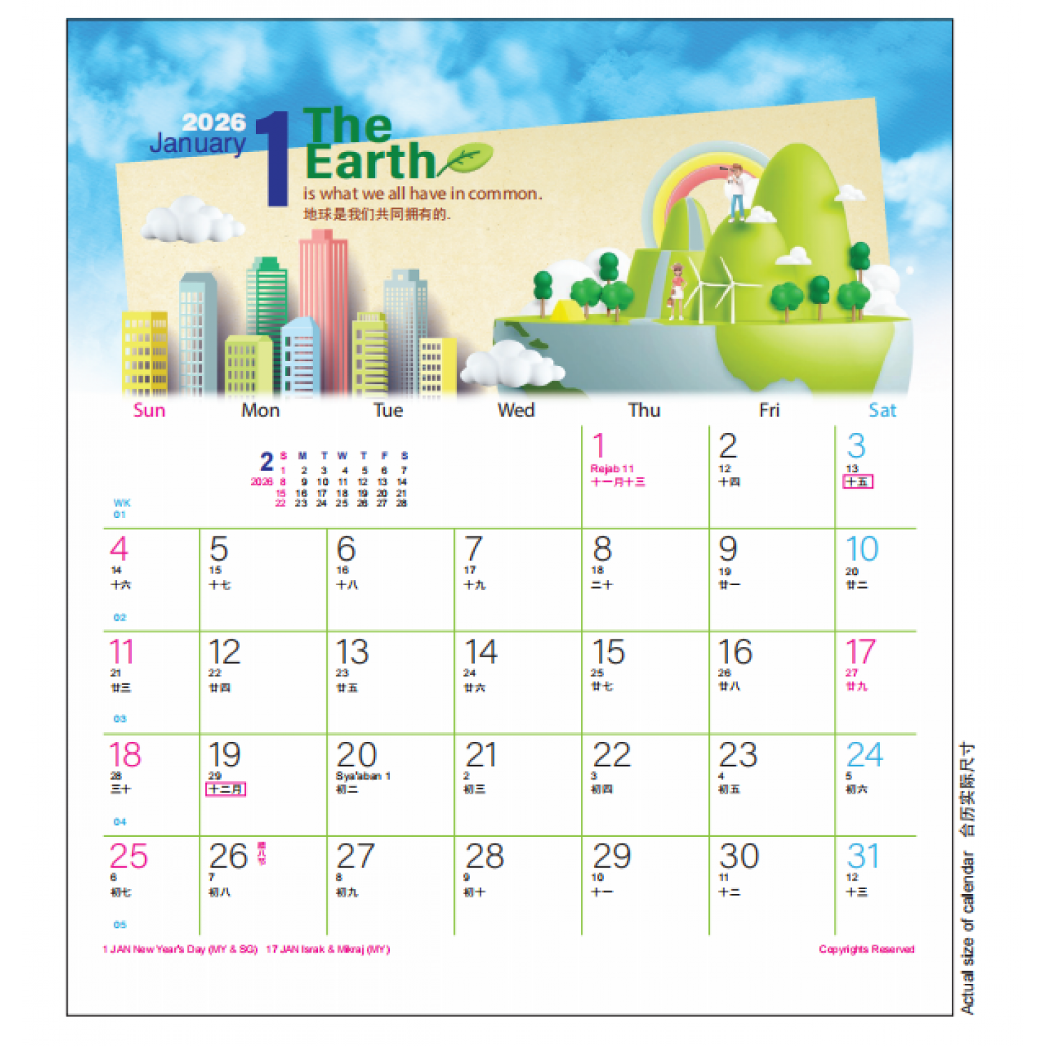 • Includes Malaysia & Singapore Public Holidays     包含马来西亚与新加坡公共假期,实用与美观兼具