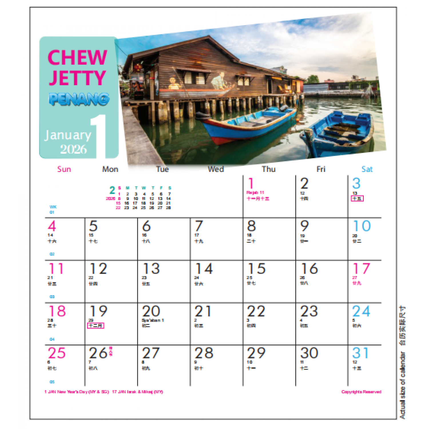 - Includes Malaysia & Singapore Public Holidays 包含马来西亚与新加坡公共假期,实用与美观兼具