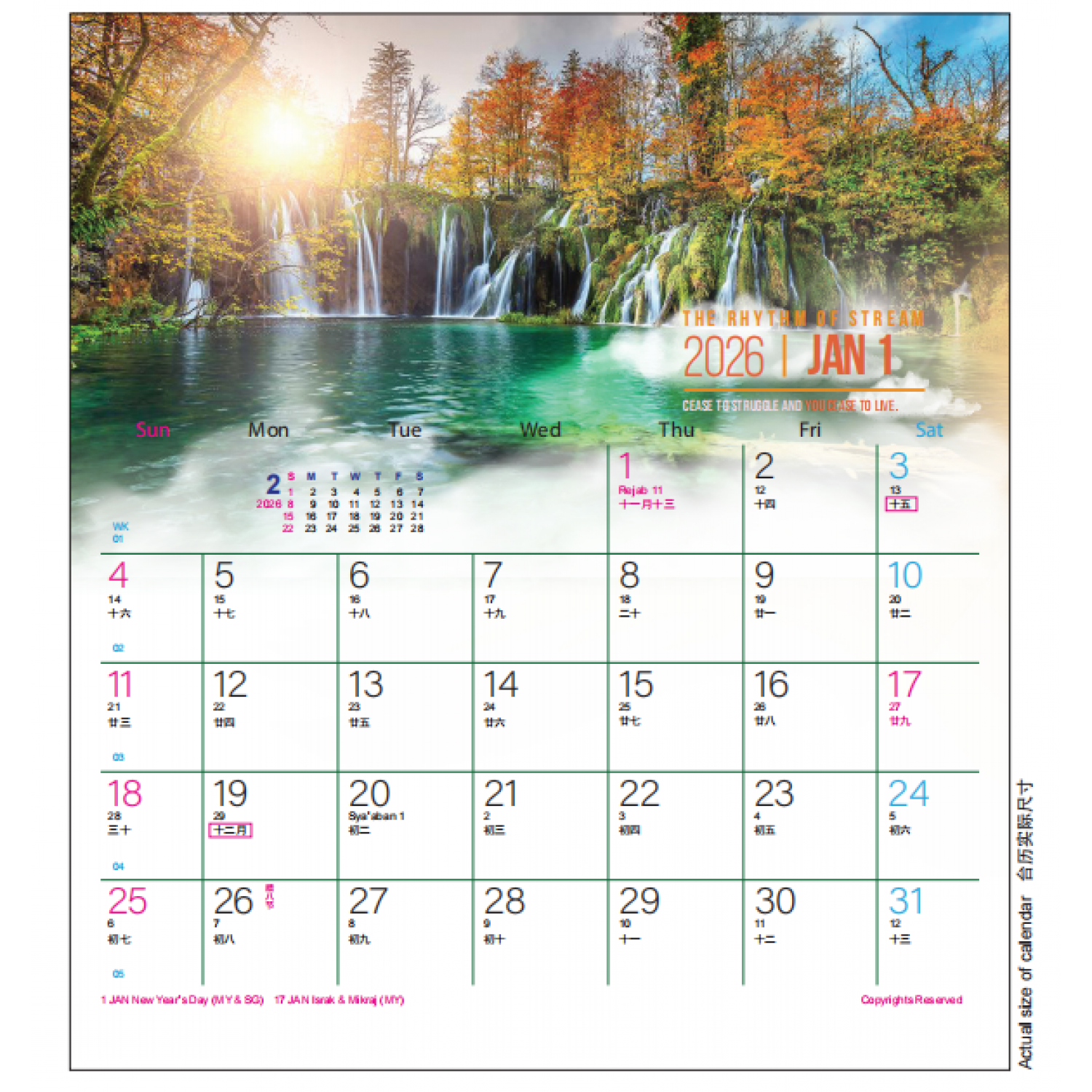• Includes Malaysia & Singapore Public Holidays     包含马来西亚与新加坡公共假期,实用与美观兼具