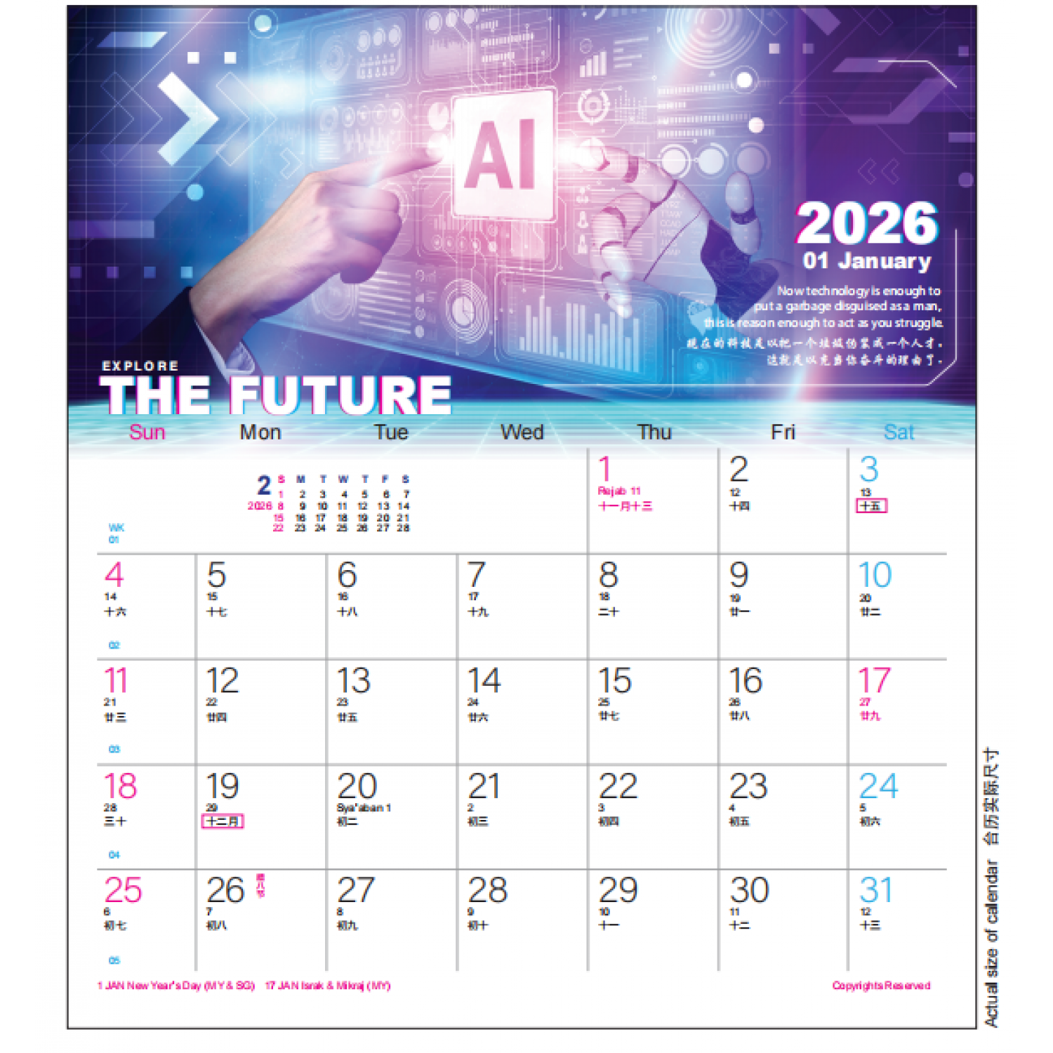 - Includes Malaysia & Singapore Public Holidays 包含马来西亚与新加坡公共假期,实用与美观兼具