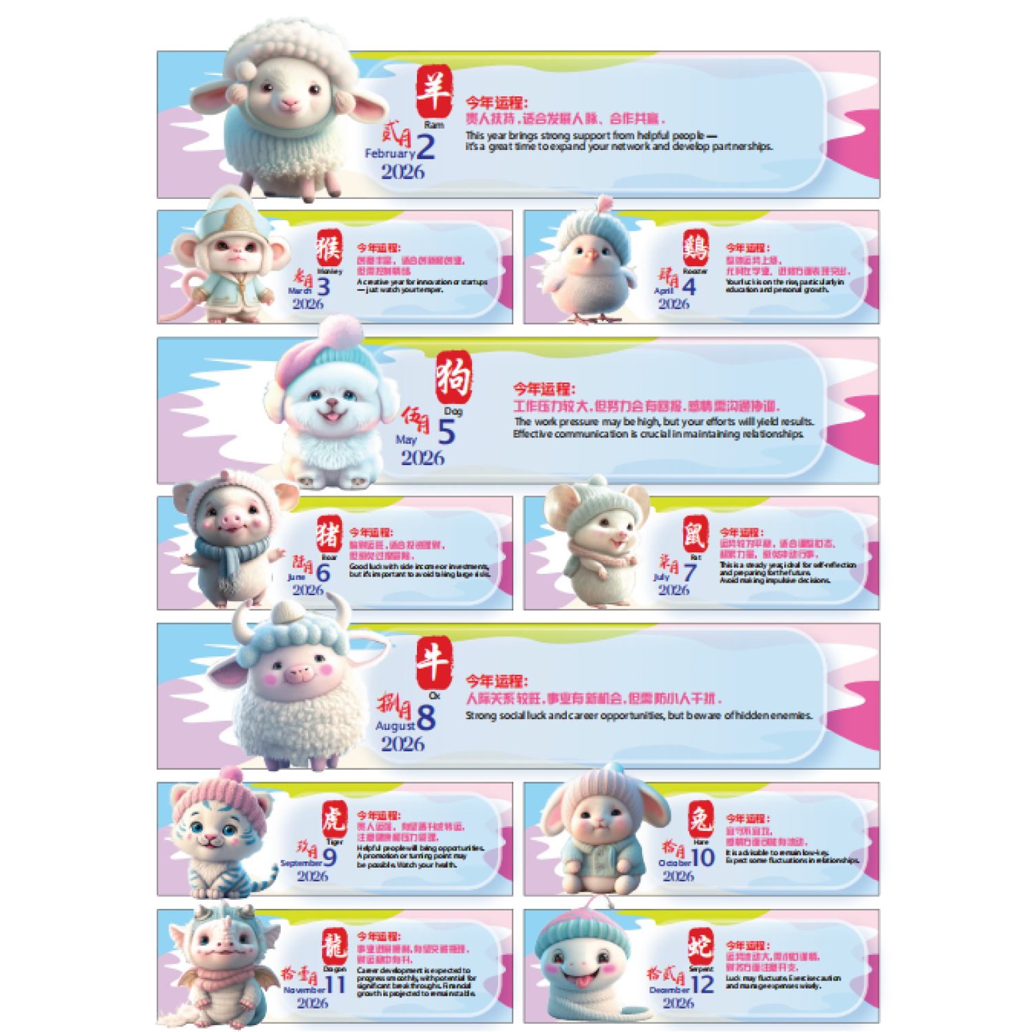 Vertical Desk Calendar ( Code : 6813 - Chinese Zodiac )